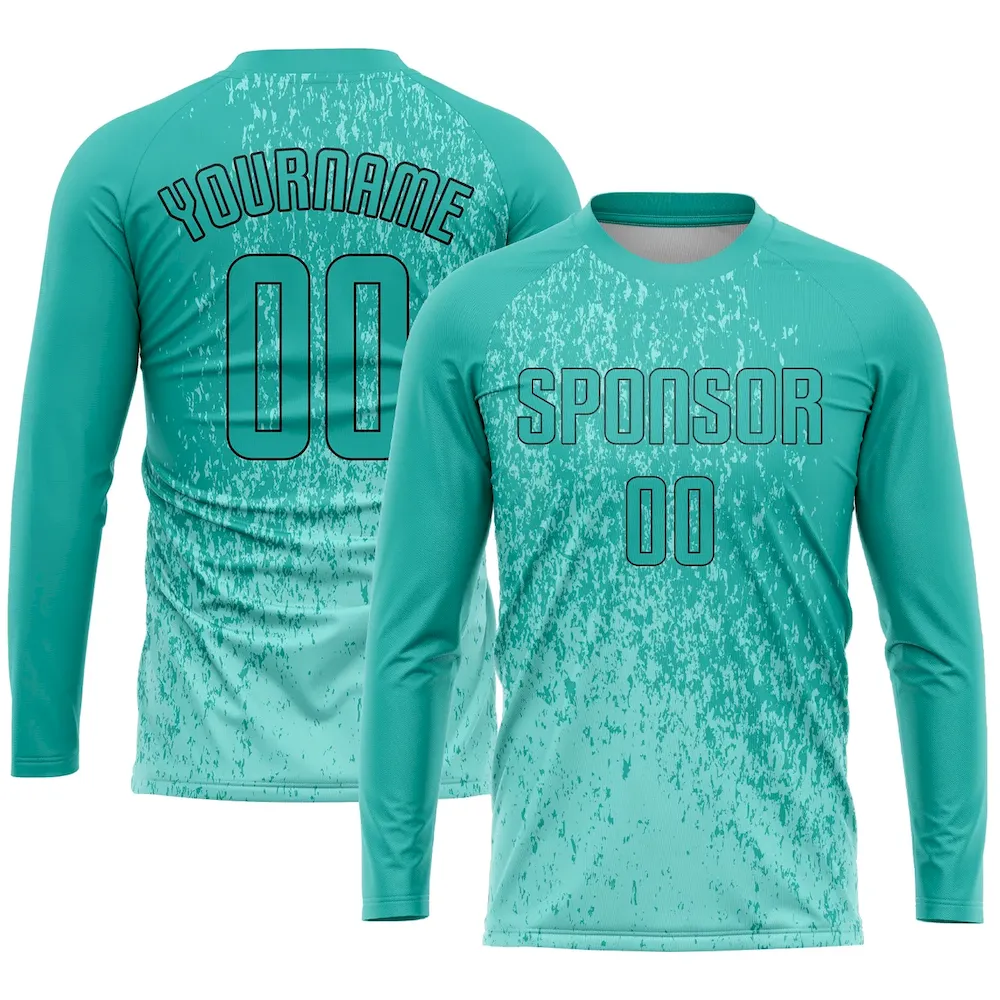 Custom Aqua Aqua-Black Sublimation Soccer Uniform Jersey