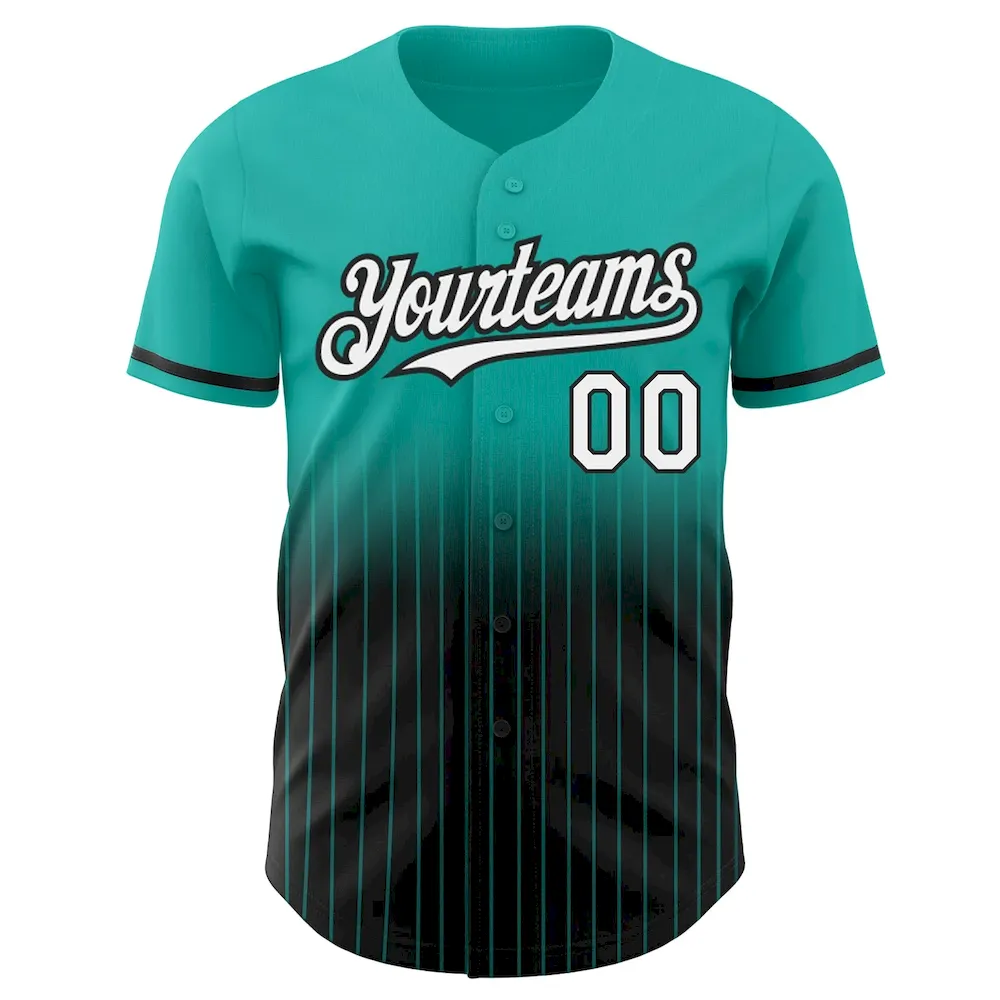 Custom Aqua Pinstripe White-Black Authentic Fade Fashion Baseball Jersey