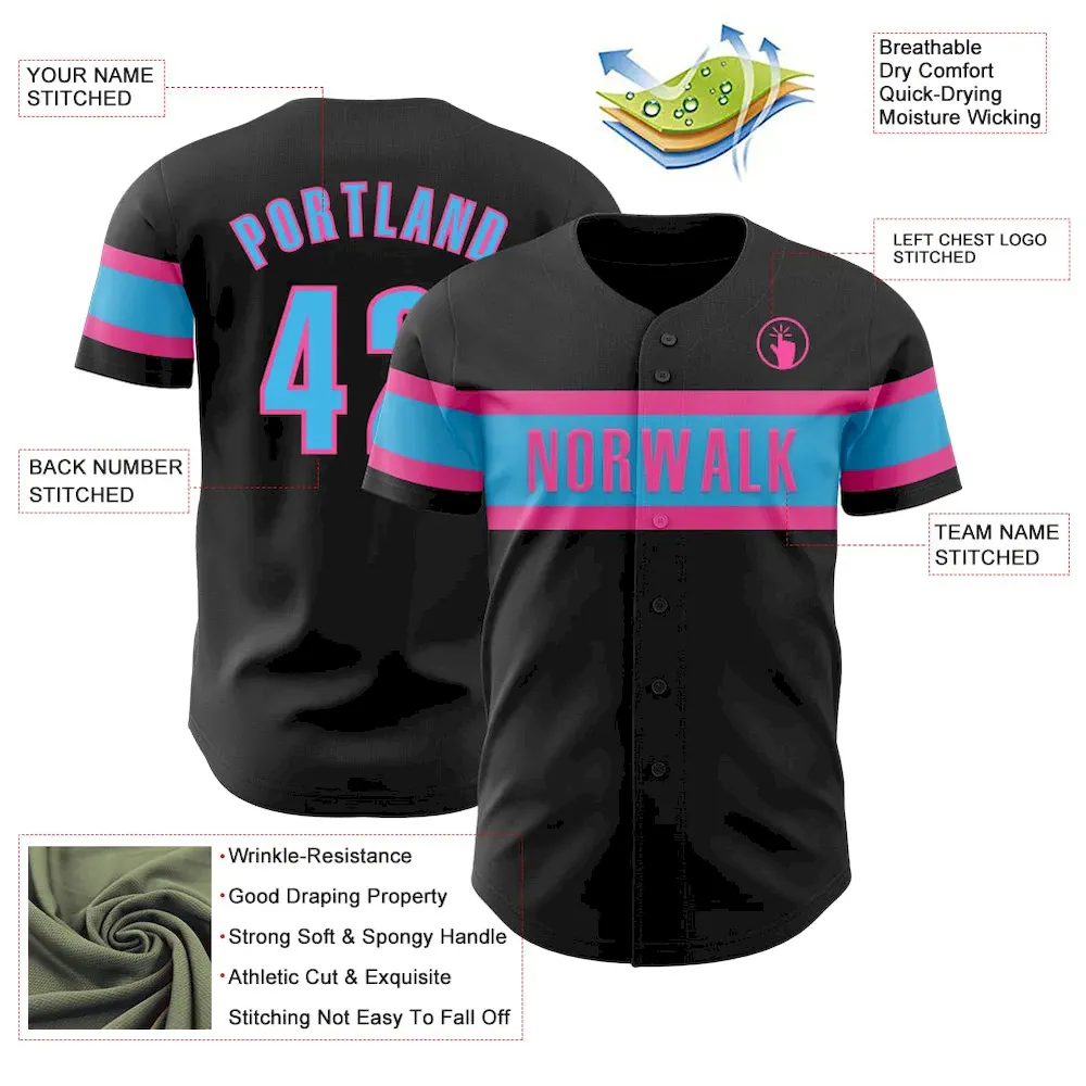 Custom Black Sky Blue-Pink Authentic Baseball Jersey