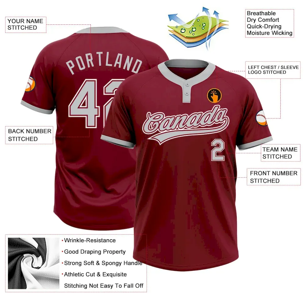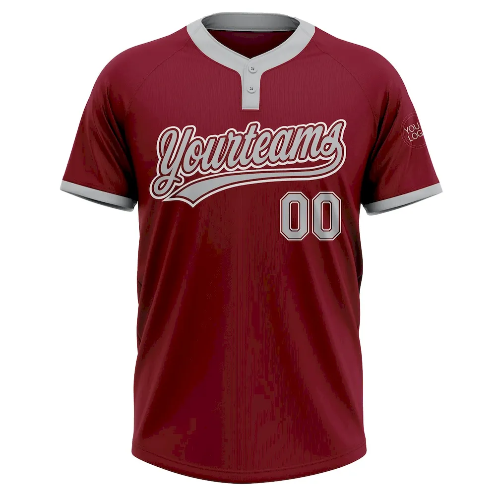 Custom Crimson Gray-White Two-Button Unisex Softball Jersey