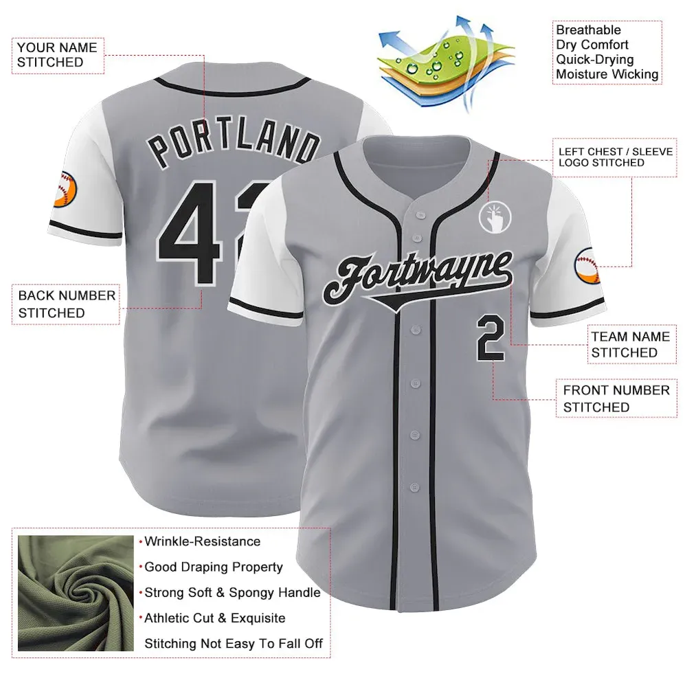 Custom Gray Black-White Authentic Two Tone Baseball Jersey