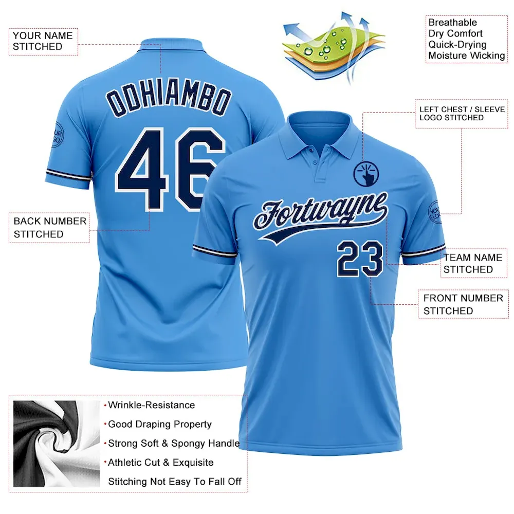 Custom Powder Blue Navy-White Performance Vapor Golf Polo Shirt