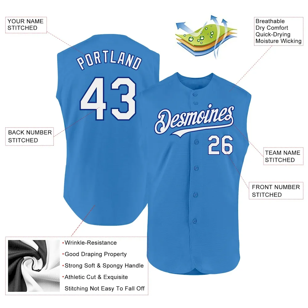 Custom Powder Blue White-Royal Authentic Sleeveless Baseball Jersey