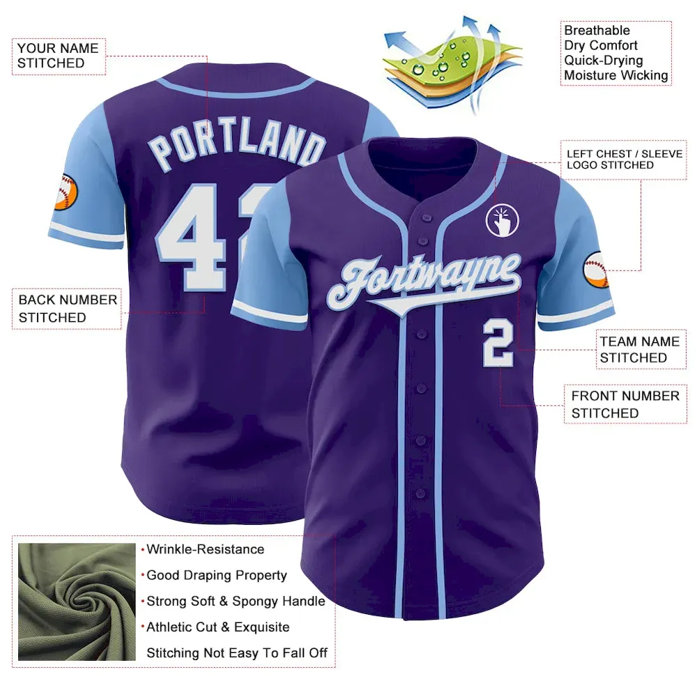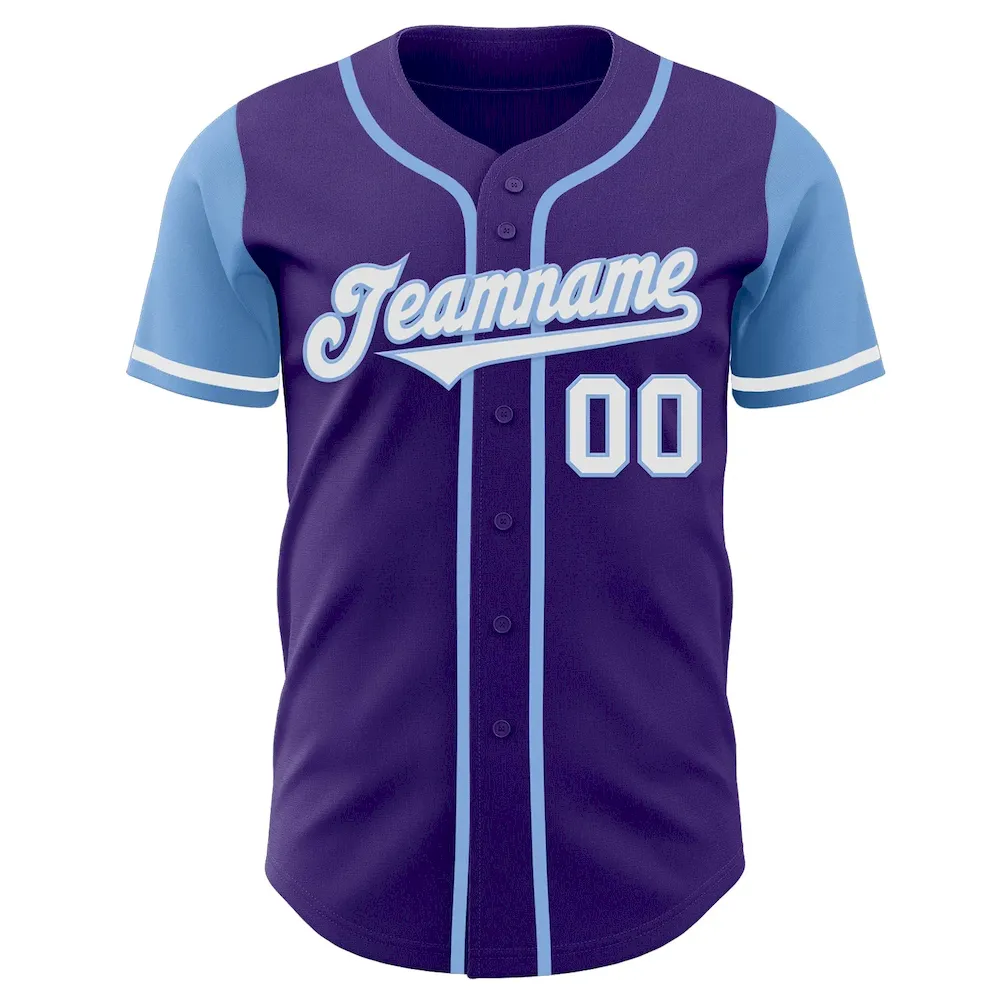 Custom Purple White-Light Blue Authentic Two Tone Baseball Jersey