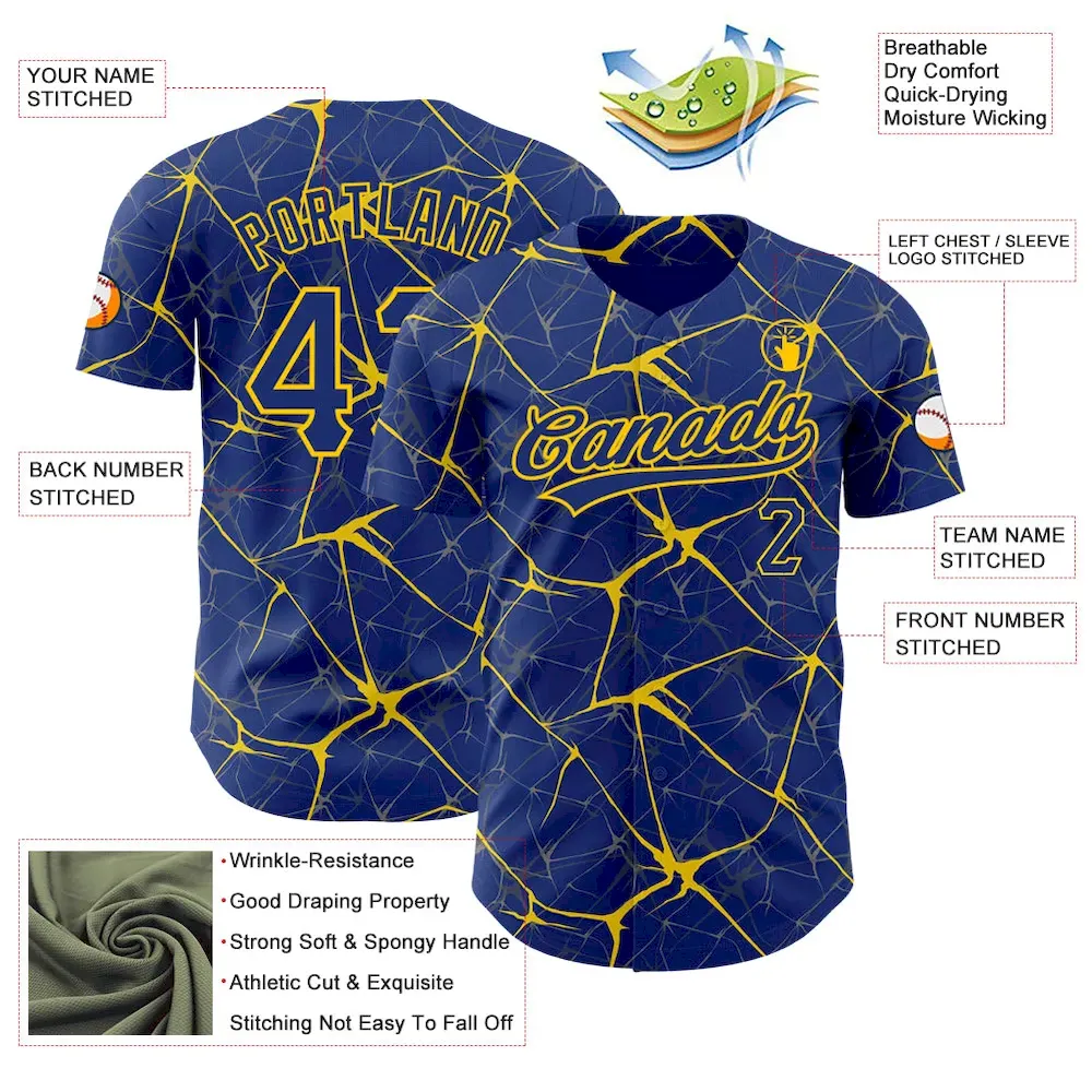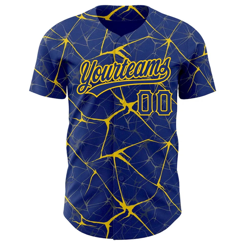 Custom Royal Yellow 3D Pattern Design Abstract Network Authentic Baseball Jersey